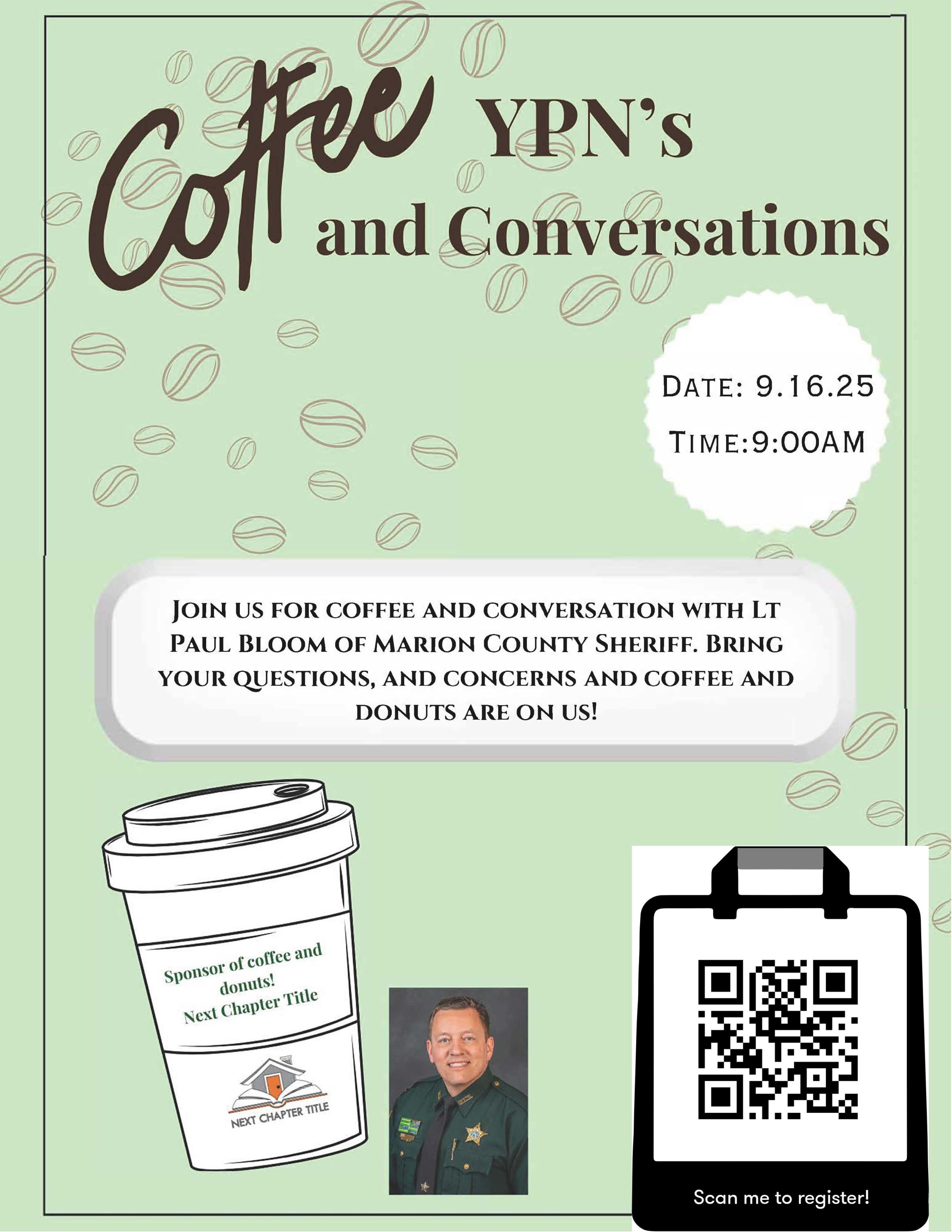 You don't want to miss this networking event! Join Lt. Paul Bloom with the Marion County Sheriff's Office, who will provide very valuable safety tips that you will be able to incorporate to keep you safe! Bring your concerns and questions and enjoy coffee and donuts on us! Sponsored by Betty Stallone with Next Chapter Title Inc., www.nextchaptertitle.com. Main # 352-732-3001.